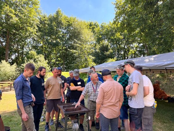 Po obiedzie adepci sztuki kowalskiej stanęli przy kowadłach, aby poznać zasady pracy z żelazem.