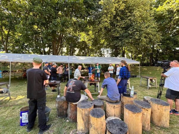 Po obiedzie adepci sztuki kowalskiej stanęli przy kowadłach, aby poznać zasady pracy z żelazem.