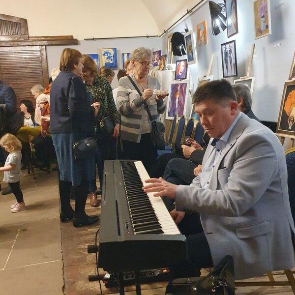 O oprawę muzyczną spotkania zadbał Kazimierz Kołodziej. Po części oficjalnej goście podziwiali obrazy, częstowali się ciastem i kawą, a na pamiątkę zabrali przygotowany przez ośrodek kultury katalog z najpiękniejszymi pracami.