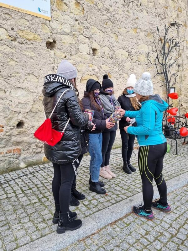 Zarówno biegacze, jak i piechurzy wrzucali dowolne datki do puszek wolontariuszy. Na darczyńców w tym roku czekały: Natalia Mirońska z Emilką Gruszką, Magdalena Mirosław z Mają Jamróz oraz Izabela Czerniec z Oliwią Mirońską. Podziękowaniem za wpłatę była możliwość zwiedzania Muzeum Kowalstwa i innych pomieszczeń w Wieży Ariańskiej oraz skorzystania z konsultacji neurologopedycznych, udzielanych przez Urszulę Iwaniak.
