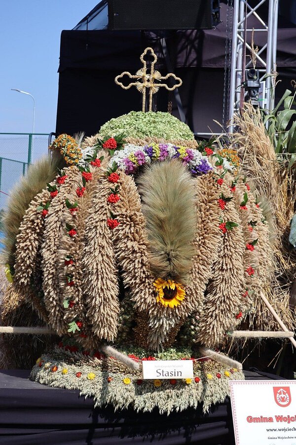 Tegoroczne święto plonów i towarzyszący mu konkurs wieńców, ze względu na pandemię koronawirusa, odbywały się w ograniczonej formule. Nie było tradycyjnego festynu, a jury konkursu wojewódzkiego odwiedzało na miejscu poszczególne powiaty, by wybrać propozycje do finału. Jedną z nich była kompozycja KGW Stasin. To wieniec uwity ze wszystkich gatunków zbóż, udekorowany czarnuszką, lnem, krotoszem, zatrwianem, nawłocią i kaliną. Kompozycję wieńczy krzyż, wykonany ze słomy, przyozdobiony kwiatami z przydomowych ogrodów.