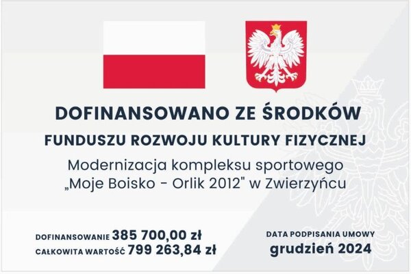 Modernizacja zwierzynieckiego "Orlika" kosztowała prawie 790 tys. zł, z czego niemal połowę stanowiła dotacja z Funduszu Rozwoju Kultury Fizycznej, którym dysponuje Ministerstwo Sportu i Turystyki.