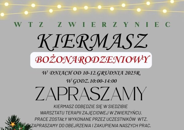 Handel przed świętami będzie się odbywać także w niedziele, ale mieszkańcy Zwierzyńca i okolic nie muszą robić przedświątecznych zakupów w tłoku i nerwowej atmosferze. Miło i rodzinnie będzie na tradycyjnym kiermaszu, który odbędzie się w miejscowym Warsztacie Terapii Zajęciowej.
