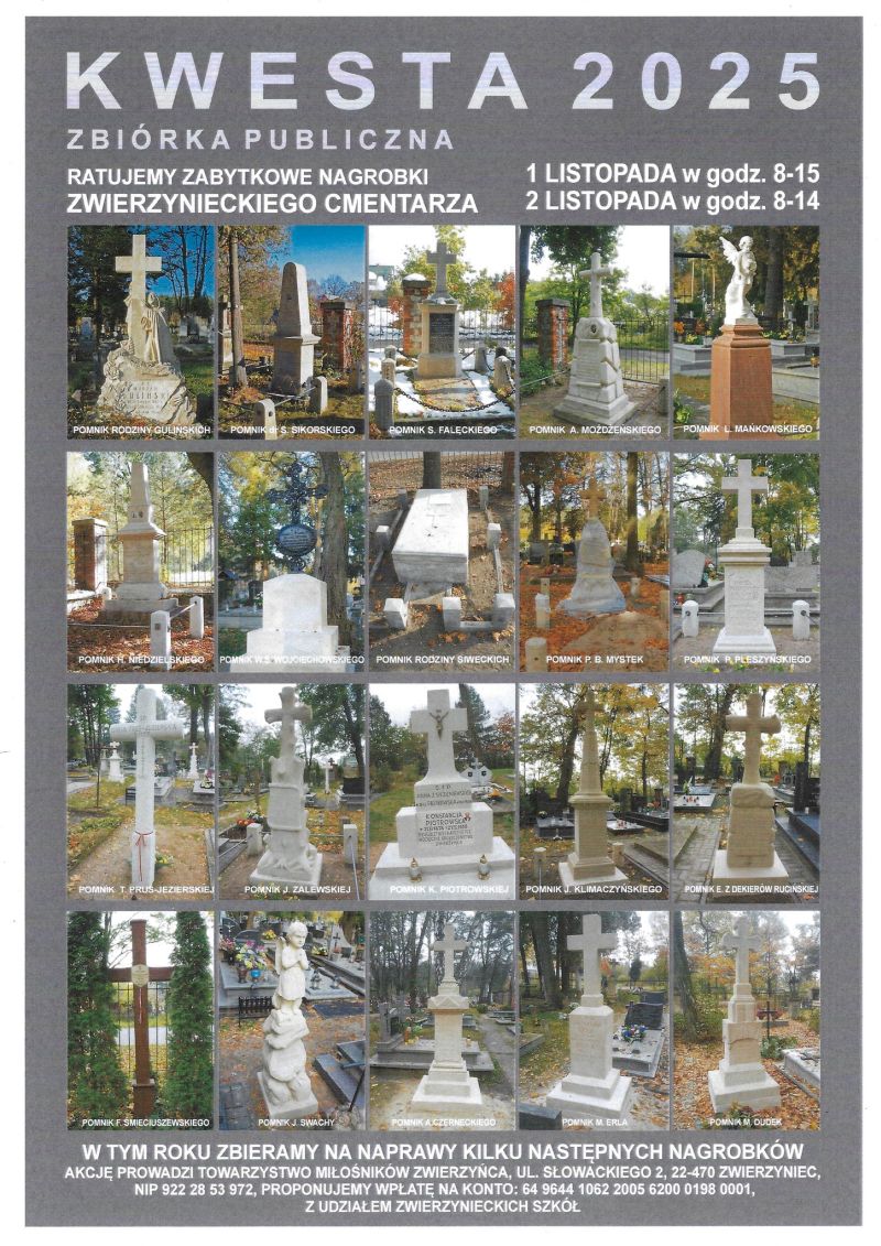 W Zwierzyńcu trwają ostatnie przygotowania do osiemnastej kwesty na rzecz ratowania zabytkowych nagrobków na miejscowym cmentarzu. Na liście wolontariuszy jest prawie 150 nazwisk, a sama zbiórka potrwa dwa dni.
