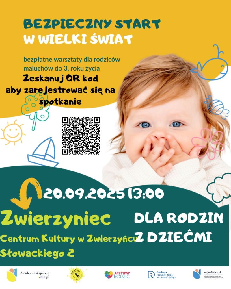 Zajęcia odbędą się w sobotę 20 września o 13.00 w centrum kultury, ale zainteresowani opiekunowie powinni się na nie wcześniej zapisać. Można to zrobić skanując kod QR umieszczony na plakacie zapowiadającym warsztaty, który jest dostępny m.in. na stronie: www.zwierzyniec.info.pl. Rekrutacja chętnych odbywa się również na stronie: akademiawsparcia.com.pl.