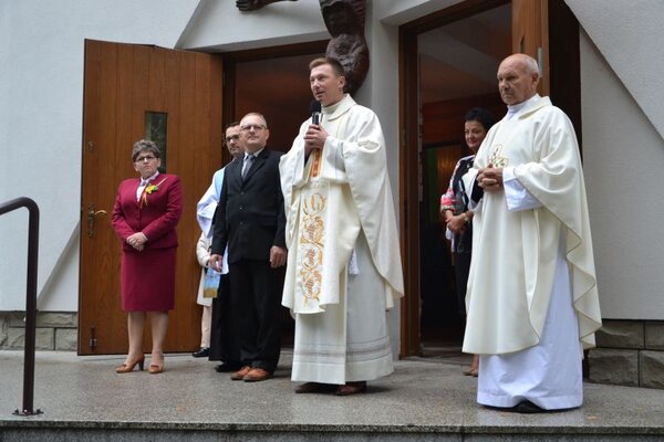 Funkcje te pełnili Irena Staroń i Jan Andrzej Osmulski, którzy stanęli na czele korowodu z wieńcami dożynkowymi i chlebem. Bochenki, wypieczone z tegorocznych zbóż delegacje poszczególnych miejscowości przekazywały przedstawicielom władz samorządowych i duchownym. Odbierali je burmistrz Zwierzyńca Urszula Kolman i wiceprzewodniczący rady miejskiej Ryszard Maciejewski, a także proboszcz parafii w Topólczy, do której należy Wywłoczka, ksiądz Bartłomiej Garczyński oraz ksiądz kanonik Emil Wojtaś i ksiądz Sławomir Portka z parafii w Zwierzyńcu.